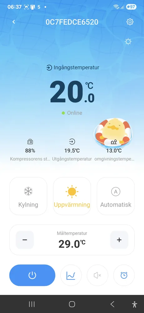 Justerar automatiskt värmekapaciteten för att anpassa den till väderförhållandena.