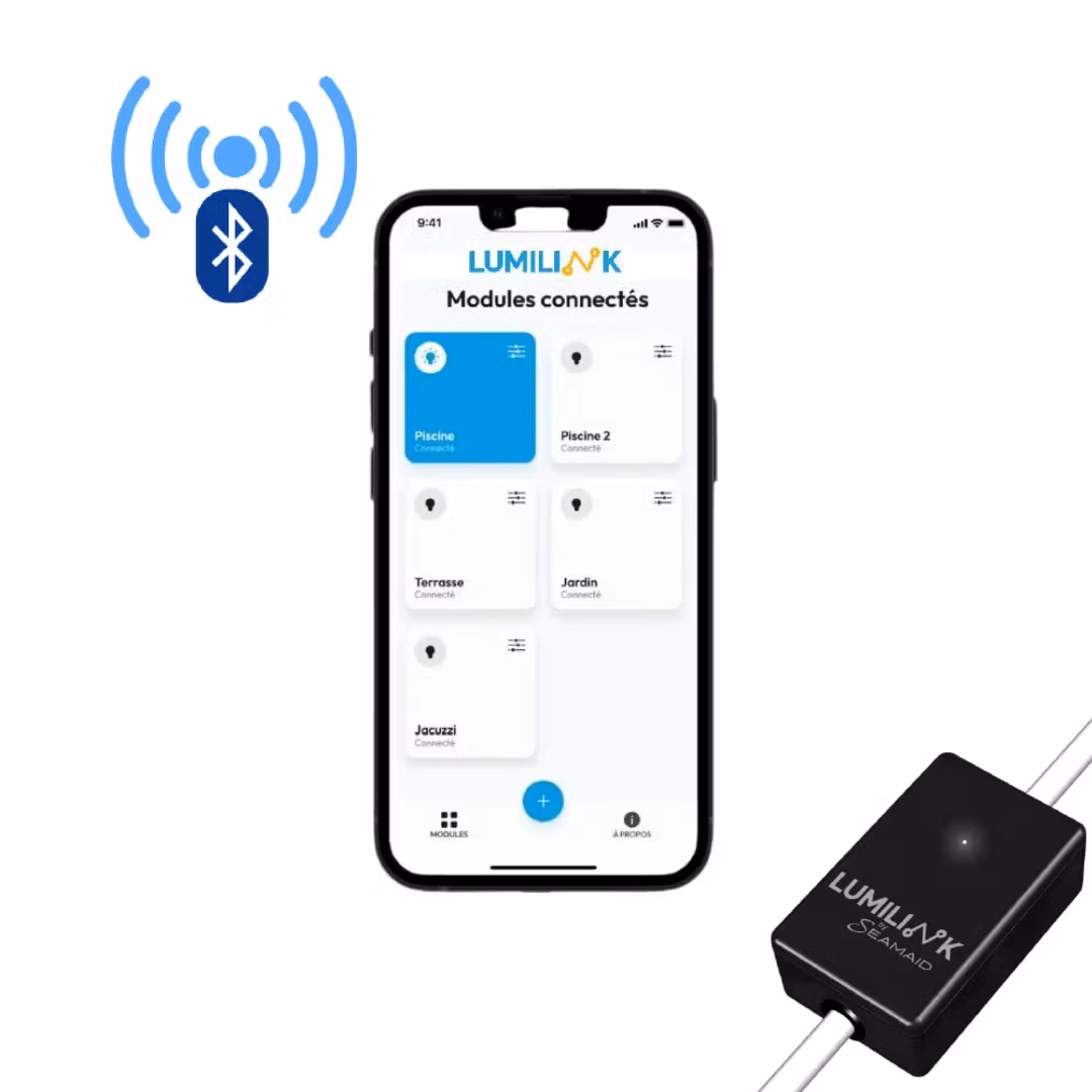 Styr din poolbelysning belysning med SEAMAID LUMILINK belysningsstyrning, Bluetooth 5.0 teknik. Kompatibel med iOS, Android och Huawei.
