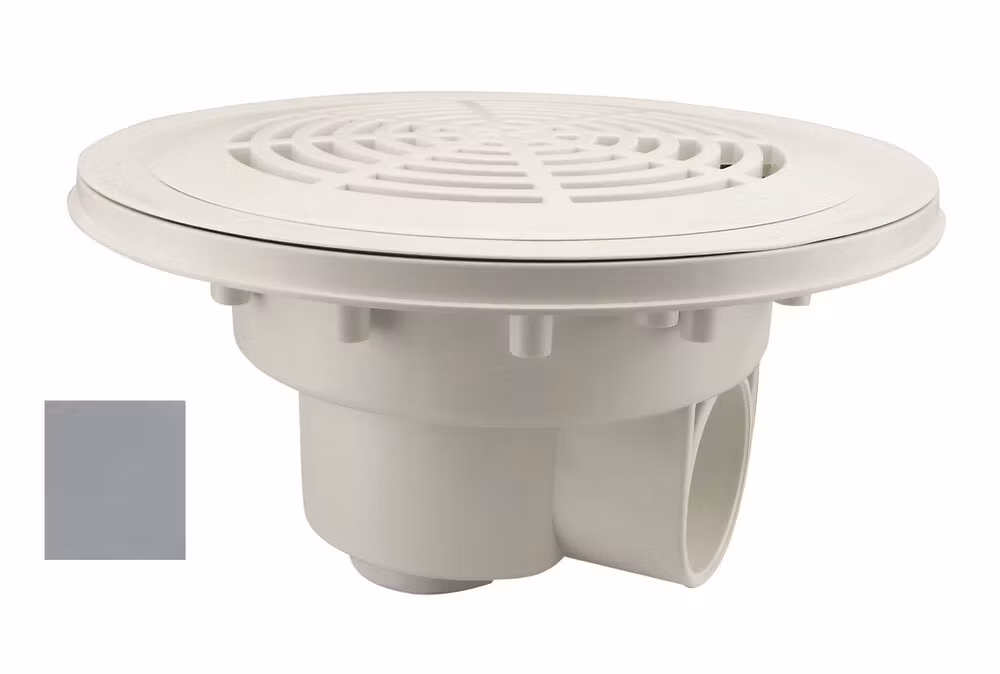 Bottenavlopp i grå ABS-plast för t.ex. thermoblockpooler. Bottenavlopp ger bättre cirkulation i poolen och är nödvändigt i overflow-pooler. När det byggs in möjliggör det låg bygghöjd i poolen och skapar inga problem för t.ex. poolrobot.