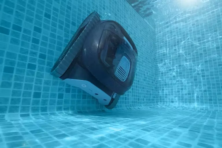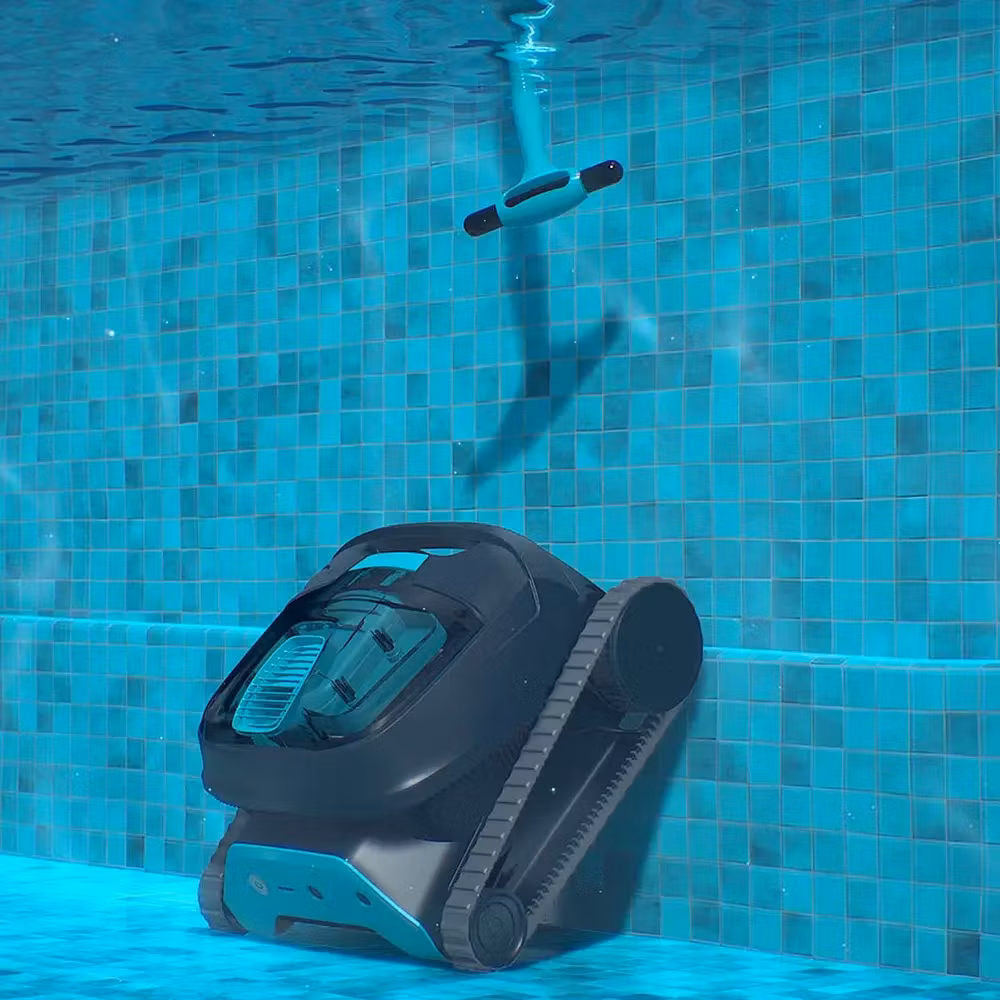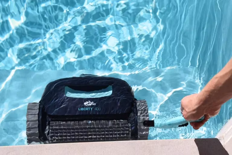 Under de sista minuterna av rengöringscykeln kommer Liberty 400 att klättra upp för varje vägg och vänta 20 sekunder på att plockas upp. Om rengöringscykeln startades via appen får du ett pushmeddelande på din telefon som informerar dig om att roboten väntar på dig. Om den inte plockas upp kommer den att gå ner igen och vänta på golvet nära en vägg. Du kan då använda den medföljande clickern för att kalla upp roboten till vattenytan när det passar dig.