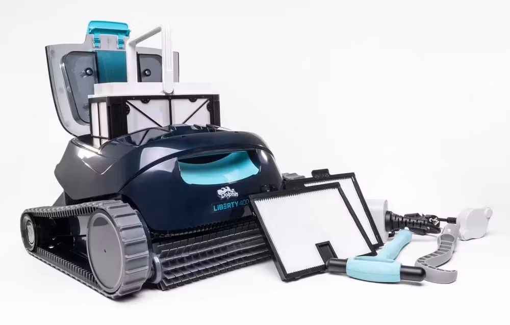 Självklart levereras Liberty 400 med en smart organizer där du enkelt samlar robotens tillbehör, samt med ett extra filter för ultrafin rengöring. Roboten rengör golv, väggar och vattenlinje. Standard rengöringscykel ligger på 2,5 h men du kan även välja ECO-läge och få en hel veckas städning på en enda laddning av batteriet. Allt beroende på dina behov för tillfället.