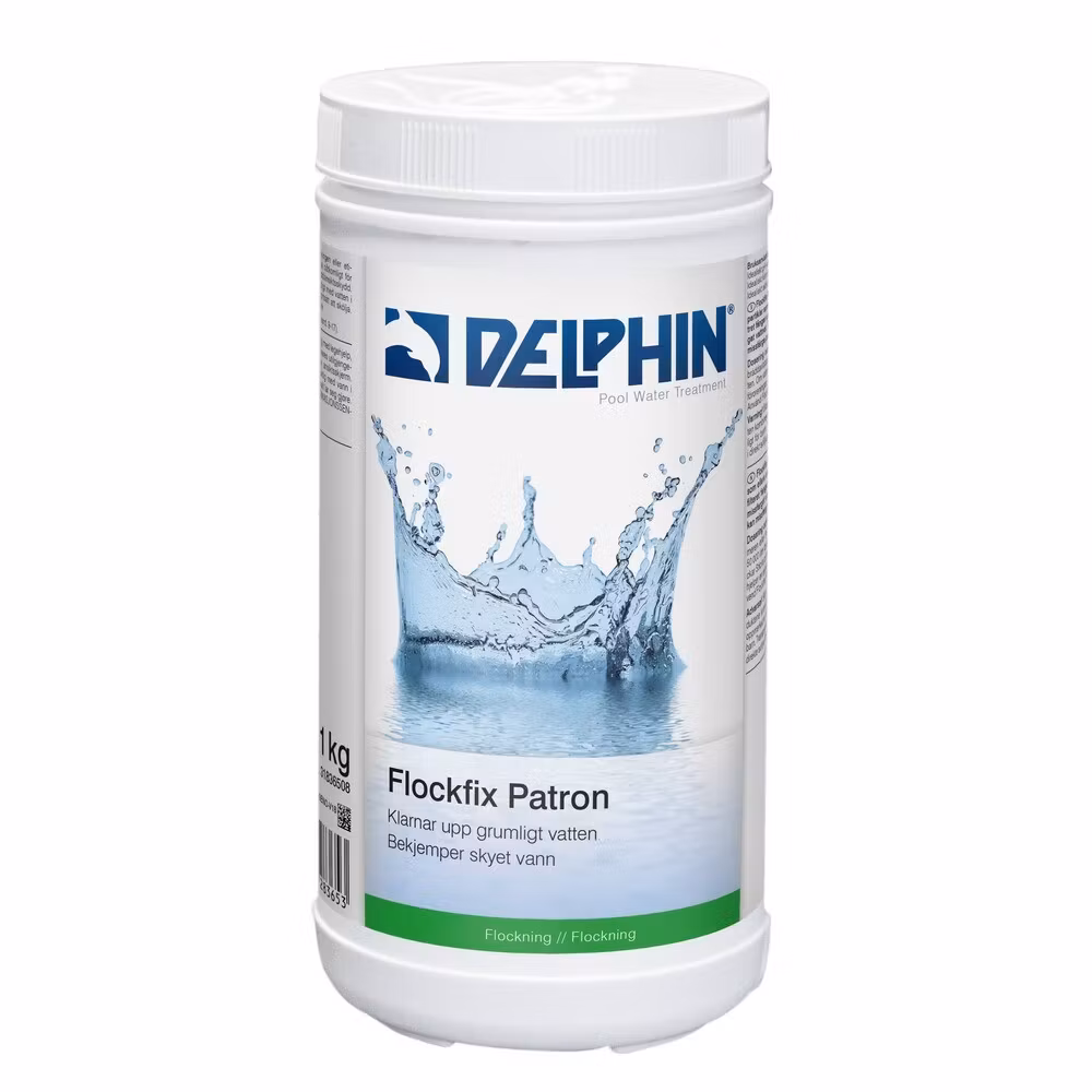 Flockfix Patron, är framtagen för att under en längre period motverka grumlighet i poolvattnet.