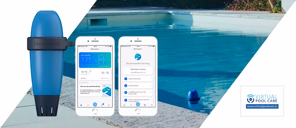 Blue connect är en smart enhet som automatiskt analyserar kvaliteten på vattnet. Enheten är utrustad med en innovativ sensor som mäter flera parametrar för att hålla ett kristallklart vatten, PH, vattentemperatur, ORP(desinfektionsnivå) och konduktivitet (salt).