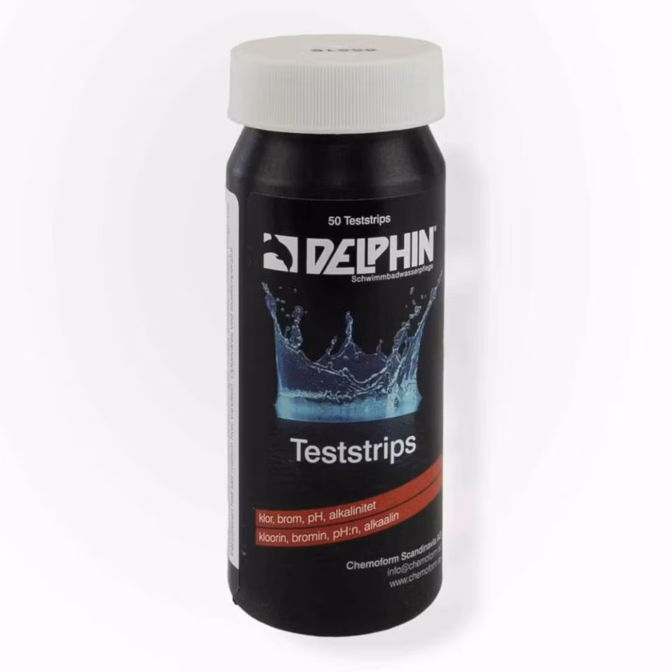 Teststickor (pH, klor, brom, alkalinitet) som mäter pH-värdet, klor-eller bromvärdet och alkaliniteten i vattnet. 50 stUndvik att ta i stickornas testdel, detta