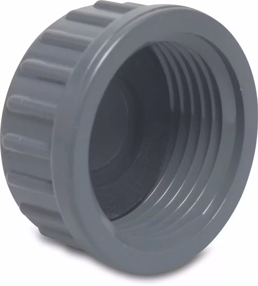 End huv i stark PVC-U. 2" invändig gänga. Beskrivning End huv i stark PVC-U. 2" invändig gänga. Smart del som limmas i änden av ett rör eller en slang för att plugga igen röret.
