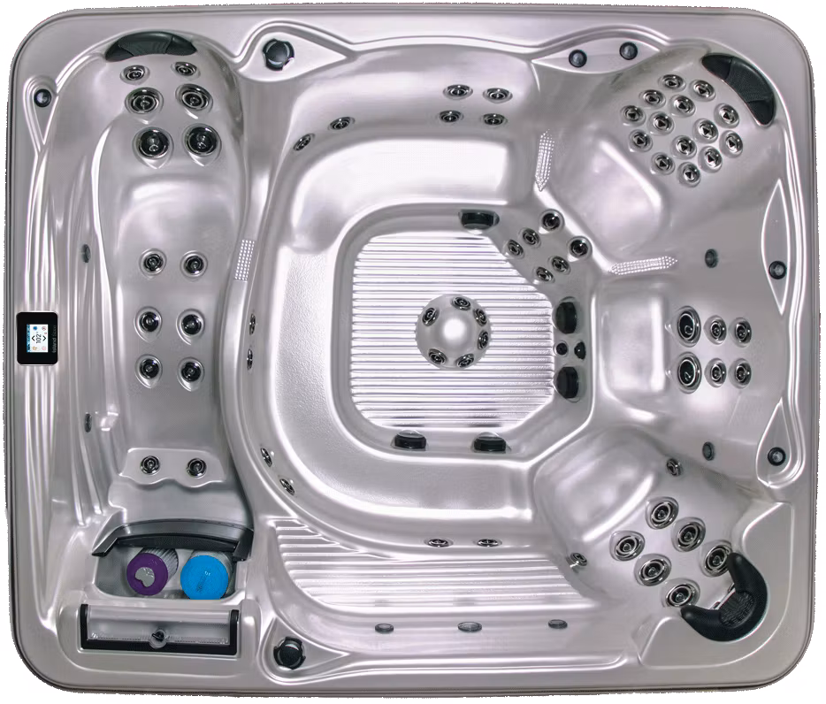 Denna rymliga spamodell omfamnar samma handgjorda kvalitet och prestanda som är känd från Island Spas. Helt nya funktioner inkluderar en cirkulär bänk och öppna ytor. 9 Sittplatser, 3 st kraftfulla pumpar kan ge alla den uppmärksamhet som man förtjänar i ett kvalitets spabad. OBS! Vid locklyftare så behövs det 2 st pgs storleken på locket. Vi rekomenderar 2 st Covermate III alt CM 3 Sittplatser: 9 st Storlek: 274 x 231 x 91 cm Torrvikt: 454 kg Vattenkapacitet: 2082 liter Jets: 71st Pump 1: 3 bhp 1 spd Pump 2: 3 bhp 1 spd Pump 3: 1,5 hk Sittplatser: 6.0 st Torrvikt: 331.0 kg Vikt vattenfylld: 1749.0 kg Vattenmängd: 1419.0 liter Antal jets: 71.0 Pumpar: 3 bhp 1 spd