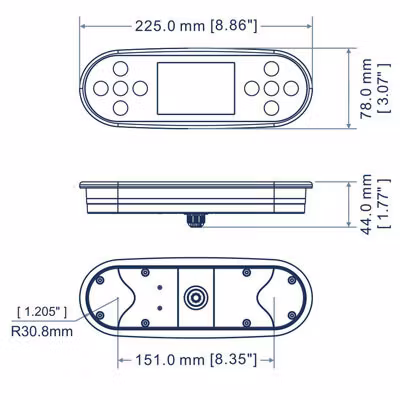 10 knappar för enkel navigation i meny och för att kunna sätta på/stänga av jets och ljus. Det går även att invertera displayen så du kan vända displayen beroende på om du är i eller utanför ditt bad. Beskrivning Kontrollpanelen PB553 är försedd med en 3,5" bakgrundsbelyst skärm som t.ex. visar tid, temperatur och vilken typ av inställning som är aktiverat i ditt spa. Du kan i menyerna ändra i filtercykler och styrsystemets konfiguration. Lättanvända pekknappar med bakgrundsbelysning. Enkel installation utan verktyg 10 knappar för enkel navigation i meny och för att kunna sätta på/stänga av jets och ljus. Det går även att invertera displayen så du kan vända displayen beroende på om du är i eller utanför ditt bad.
