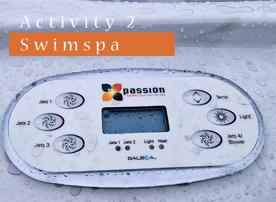 Produktbeskrivning Activity 2 Swim Spa är en längre variant av Passion Spas nuvarande modell Activity 1. Det har blivit tillagt i Passion Spas Swim Spa kollekti