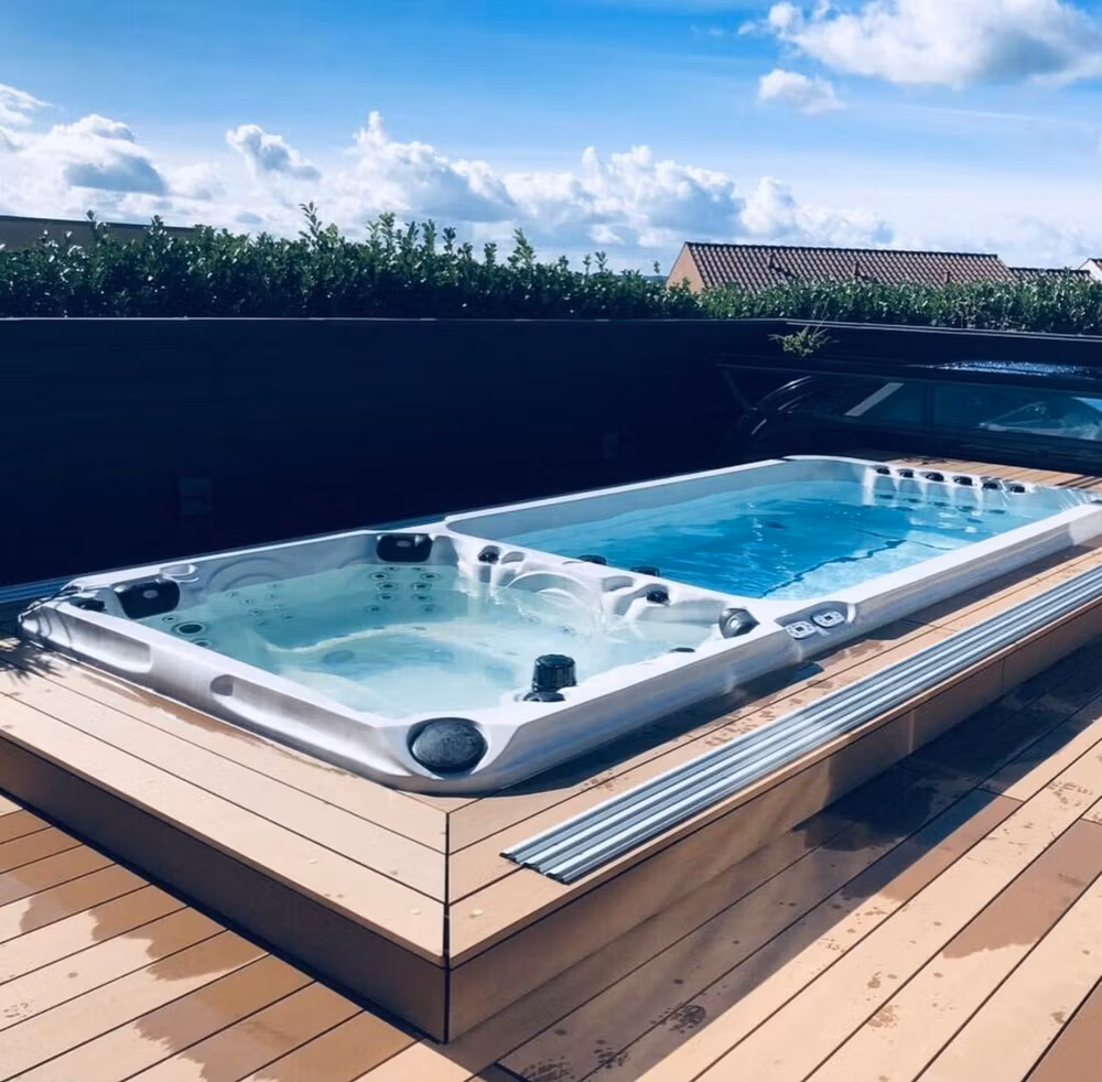 Produktbeskrivning Detta är en av våra favoriter utav olika swimspa modeller. Innehåll / Extra Info Ozon/dränering: 1.0 Teknisk Info / Ytterligare Detaljer Belysning: Starbrite interiör LED belysning