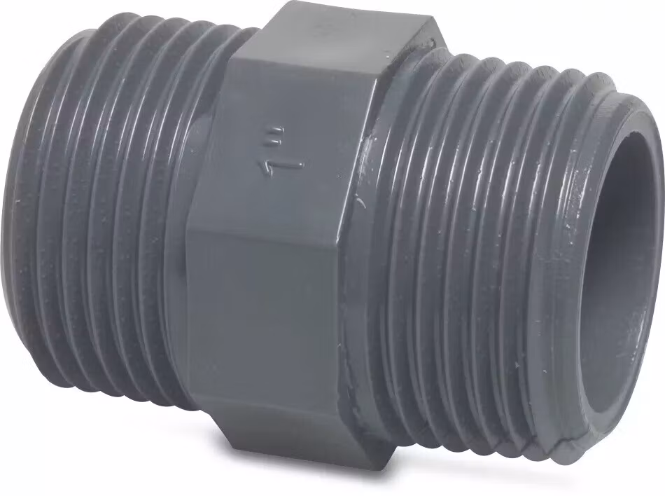 Nippel PVC-U 1 1/4" utvändig gänga x 1 1/4" 10 bar grå