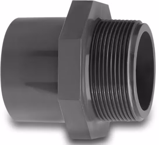Övergångsnippel PVC 50 mm x 1 1/2" lim x utvändig gänga 16bar grå