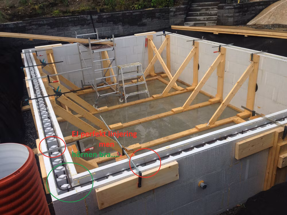 Proffs thermoblock kan as i vilken storlek som helst, vilket gör att du kan skräddarsy den efter dina behov. I detta poolpaket ingår: Poolbygge Antal byggstenar P80 och slutelement för respektive poolstorlek. Mjuk skyddsmatta för inklädning av väggar och botten, exclusive fleece-lim för fästning av skyddsmattan. Betong och armering ingår ej! Poolliner Poolliner 0,75mm enfärgad, inklusive snäpp-in list för liner monteringen. Mönstrad liner finns som tillval. Sandfilteranläggning Sandfilteranläggning anpassad efter poolstorlek. Sandfilter med en kraftig pump för att få en bra cirkulation i bassängen. Filtertanken har en 6-vägs-toppventil som är förberedd för 50mm rörkoppling. Filtersand medföljer, mängden är anpassad till filtertankens storlek. Samtliga sandfilter har ett förfilter och levereras med filterplatta. Anpassad efter poolens storlek har sandfiltret följande specifikation: Pump 11m3/h 690W / 0,92hk, självsugande Rostfri stege Stege i rostfritt V2A stål. Lejdarna är 43mm tjocka och trappstegen är utrustade med halkskydd. Stege för nedgrävda modeller med 4 steg vid 150cm djup pool. Inbyggnadsdelar Bräddavlopp med förlängd hals i materialet ABS. Inlopp 18mm i ABS, 2st väggenomföringar i ABS. I de mindre paketen så är de anpassade efter storleken och vad som krävs. PVC-delar och kopplingar PVC-slang med 50mm i diameter, kulventil, vinklar och kopplingar som behövs för att koppla ihop poolen med filtret ingår. Delarna är anpassade efter poolsetet och levereras inklusive PVC rengöringsvätska och PVC-lim. För måttning av thermoblockpool, vänligen kontakta oss. Så här går poolbygget till: Utgrävning där poolen ska stå (Separat offert på grävningen) Gjutning av bottenplatta (separat offert på gjutning av bottenplatta samt väggar) Väggarna byggs upp med Thermoblock och armeringsjärn Inbyggnadsdelar monteras Stommen fylls med betong Skyddsmatta monteras i botten och på väggar ( se våran video del 1)Snäppinlist monteras och linern hängs på plats ( se våran video del 1) Rördragning och installation av pump och sandfilter Påfyllnad av vatten samtidigt som de synliga detaljerna monteras Återfyllning av massor runt pool Notera! Belysning säljs separat se tillval. Installationsmanual Armeringsinstruktioner/ritning Garantier Teknisk Info / Ytterligare Detaljer Proffs thermoblock kan as i vilken storlek som helst, vilket gör att du kan skräddarsy den efter dina behov. Garantier