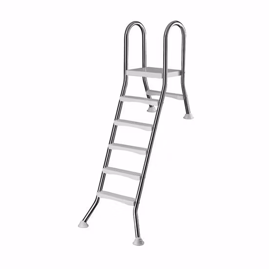 För pooler som är delvis nedgrävda med höjd 40 cm utvändigt och 150 cm invändigt samt plattform överst för lätt i- och urstigning. Beskrivning För pooler som är delvis nedgrävda med höjd 40 cm utvändigt och 150 cm invändigt samt plattform överst för lätt i- och urstigning. Stegen har 1 steg utvändigt och 5 steg invändigt. I rostfritt stål (A2) och steg i plast med mönstring för bästa grepp och halkskydd. Maxvikt 150 kg