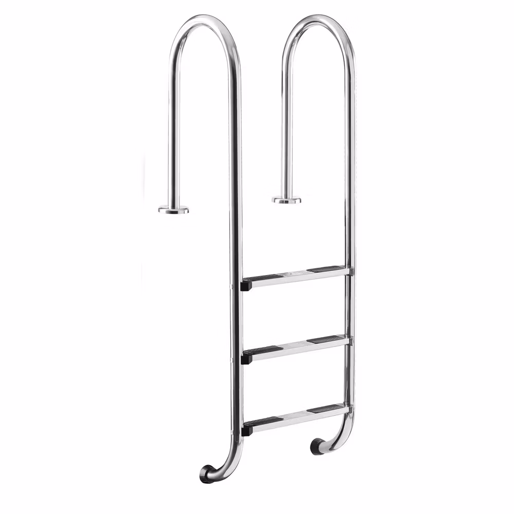 Produktbeskrivning Rostfri stege med 3 steg, för 120 cm djupa pooler som är helt nedgrävda i marken eller inbyggda i ett altandäck.