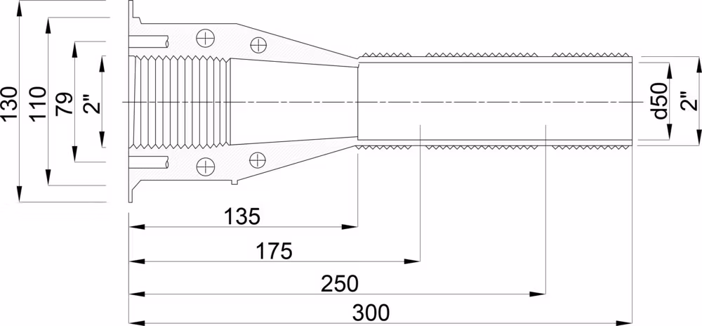 Ocean Väggennomföring ABS 2" utvändig gänga x invändig gänga vit 320 mm