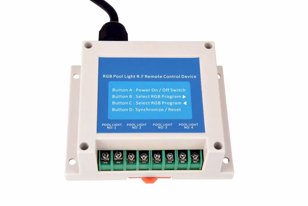 Fjärrkontroll för styrning av poolbelysning.Styr din pools belysning från upp till 50 meters distans med Vitalia Premium fjärrkontroll. Klarar upp till 4 l