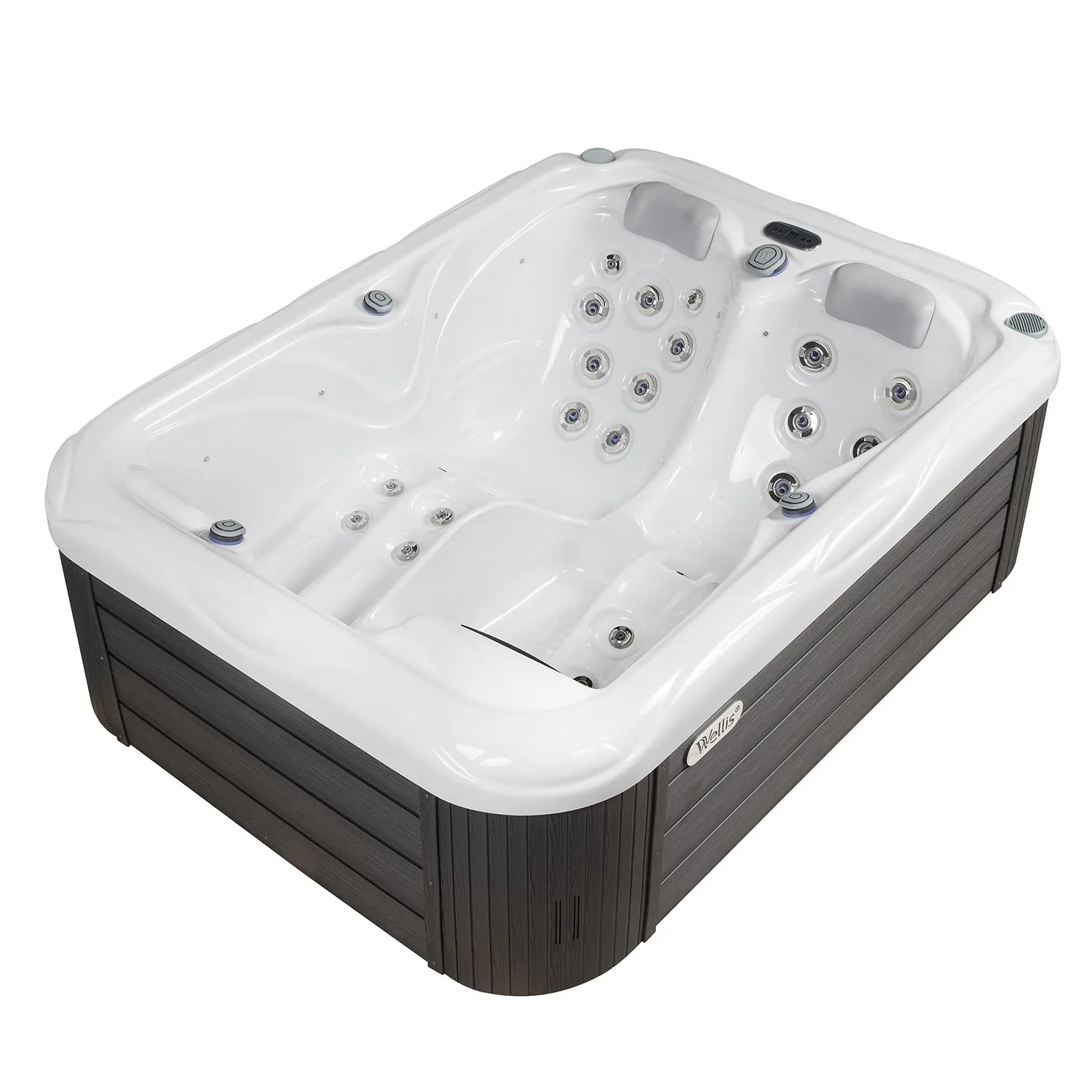 Arrangemanget av de två intilliggande fåtöljerna och en sits i Wellis Mars-jacuzzin är unikt på den europeiska marknaden. Vid designen av MySeat™-fåtöljen har våra designers eliminerat besväret som orsakas av skillnader i kroppslängd, så att våra kortare och längre kunder kan njuta av samma massageupplevelse. Tack vare sin höjd på 76 cm passar den här modellen enkelt genom en vanlig ytterdörr, vilket gör den mycket enkel att installera. Den är tillräckligt rymlig för att inkludera 37 jetstrålar, och ändå tillräckligt liten för att passa nästan var som helst – vare sig det är en skuggig terrass eller ett något större badrum.
