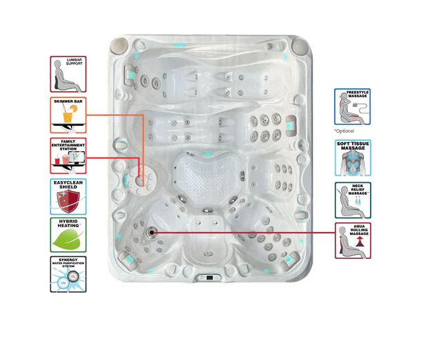 Genom att utöka designen av vårt populära Pleasure Spa lägger Desire till en extra solstol, vilket skapar ett rymligt spa med varierande sittplatser och lutning