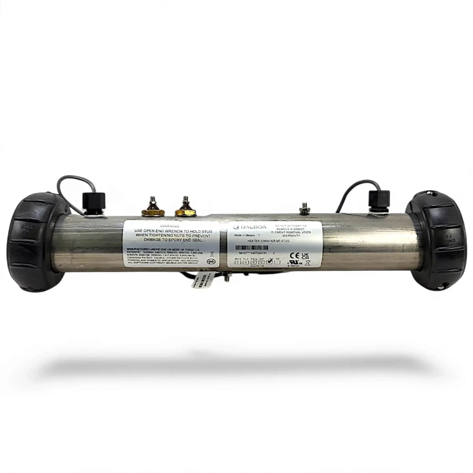 Balboa värmare som passar alla modeller av styrenhet från Balboa. Inkluderar packningar, men kabel ingår ej. Värmarens effekt är 3 kW och den fungerar med en spänning på 230 V och frekvens på 50 Hz. Den är designad för att ge effektiv uppvärmning med en längd på 38 cm och en diameter på 50 mm