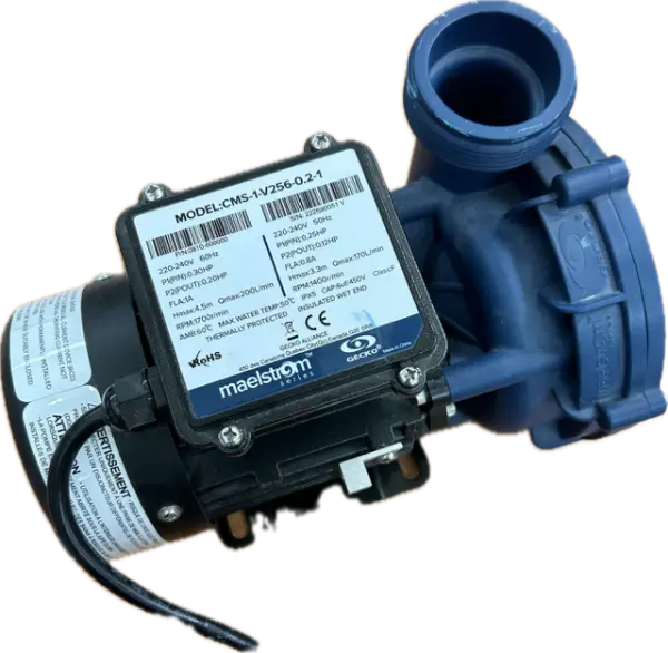 Den lilla Maelstrom CMS-1 cirkulationspumpen från Gecko är, liksom MS-1-versionerna, enkel- och dubbelväxlad utrustad med en egentillverkad motor. Denna modell har inga öppningar i motorblocket, vilket garanterar mycket gott motstånd mot vatteninträngning.