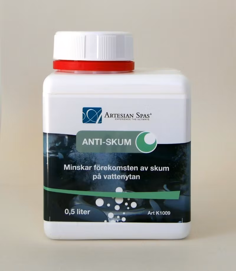 Anti-skum motverkar uppkomsten av skum på vattenytan, som ofta bildas av tvål, schampon, rengöringsmedel eller hudvårdsprodukter.