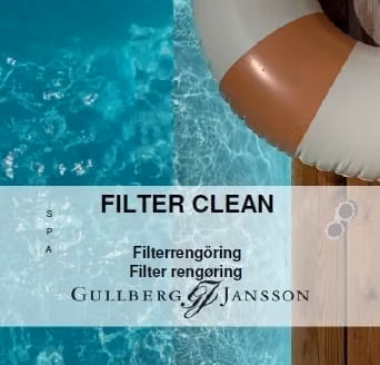 Filter Clean används för att rengöra smutsiga filterpatroner för spa ochbubbelpooler. När filtret är i bruk, samlar det upp kosmetikrester ochhudavlagringar som bildar en fet hinna ochblockerar filterpatronerna.Rengöringen måste därför utföras regelbundet.