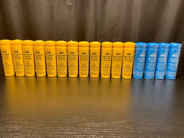 12 st Gul Bromin Patron och 4 st Blå Mineral patron. Räcker till ca 42-52 veckor beroende på användning av ditt spabad samt hur mycket bakterier ni tillför vattnet