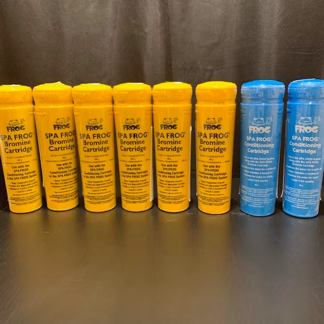 Spa Frog Floating System är för dig som inte har det inbyggda inline systemet. SpaFrog Gul - Bromin patron med bromin för Spa Frog Systemet. SpaFrog Blå -
