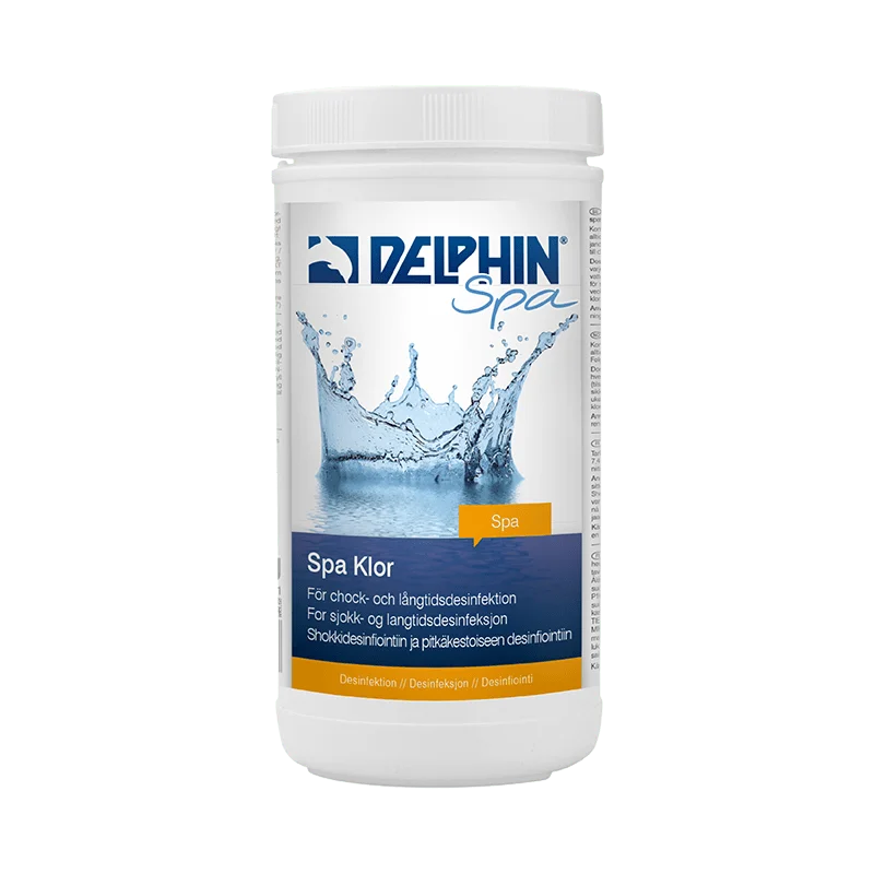 DELPHIN SPA Klor kan man använda både för chock- och för långtidsdesinfektion av spavatten.Kontrollera pH-värdet i vattnet med ett testset, justera vid behov. p
