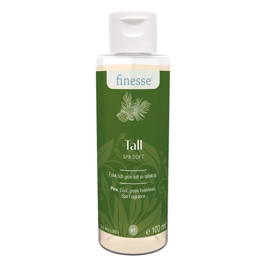 Spadoft som är special anpassad för att passa i spabad. Nyhet 2026! Finesse spadoft Tall 100 ml har en frisk och grön doft av tallskog. Doften har en kompa