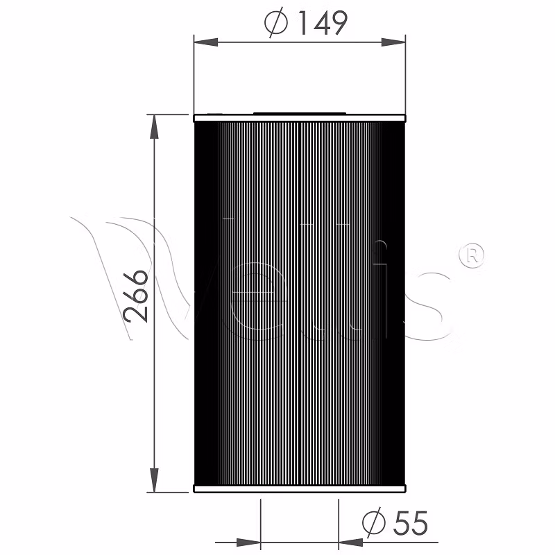 Produktbeskrivning Filtrerar mekaniska orenheter och förhindrar överväxt av bakterier. Beskrivning Filter Detaljer Längd 266mm Diameter 149mm Top Hål 55mm Botte