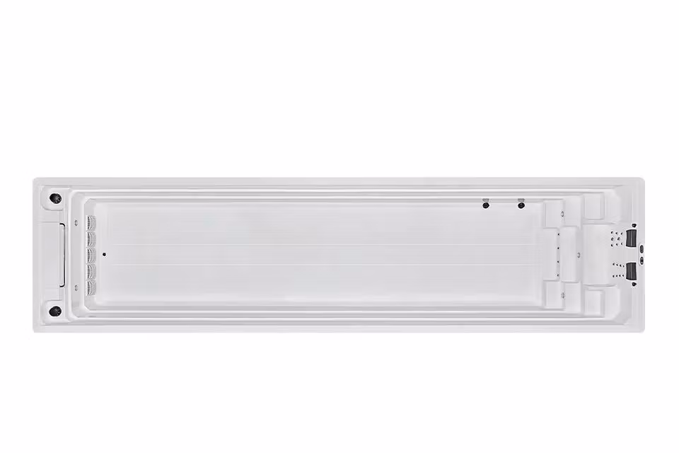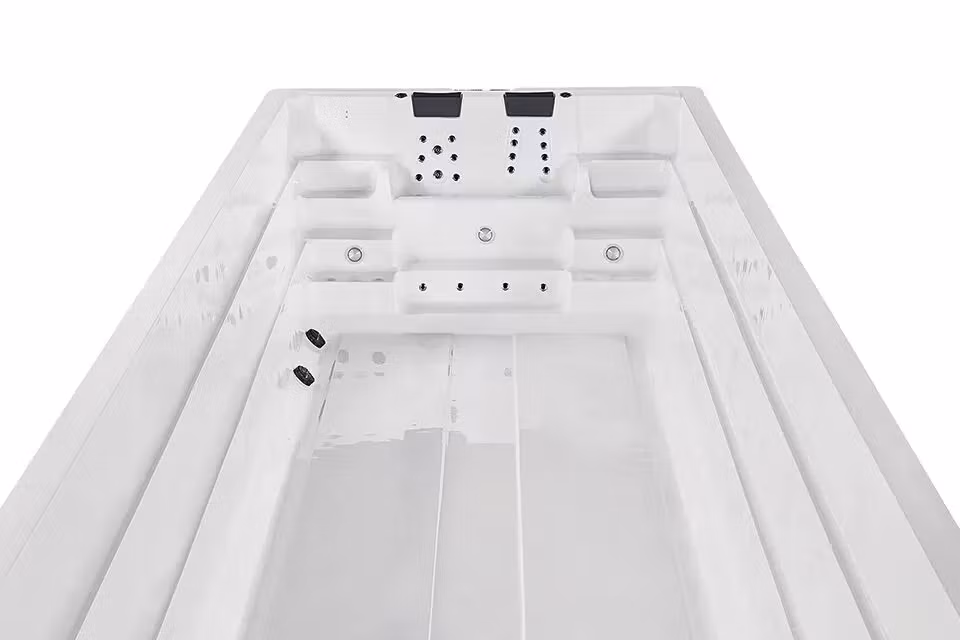 Tack vare den väl genomtänkta layouten kan du enkelt växla mellan simning och avkoppling utan att lämna poolen. Den platta botten och de släta väggarna gör underhållet enkelt och skapar en hygienisk simmiljö. De integrerade sätena erbjuder naturliga viloplatser under längre simturer. Den intuitiva designen gör detta simspa lämpligt för både nybörjare och erfarna simmare, så att alla kan ställa in sin egen takt.