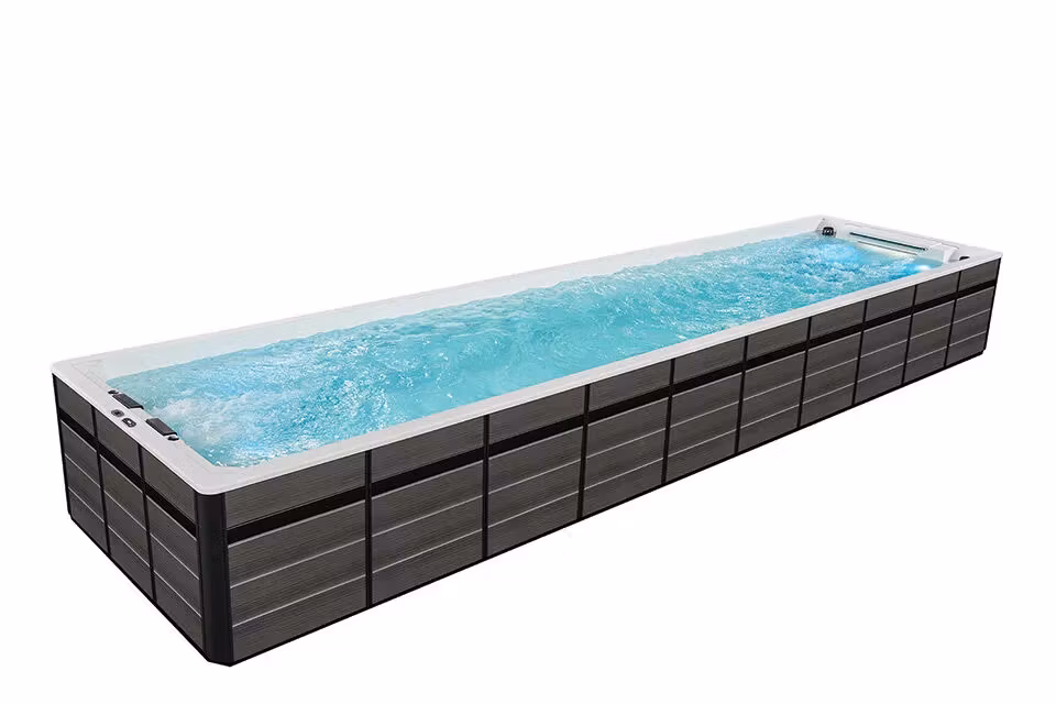 Turbine 12 Grand simspa kombinerar simning och avkoppling i en enda lyxig 11,83 meter lång pool. Detta imponerande simspa erbjuder den perfekta balansen mellan sportig funktionalitet och avkopplande välbefinnande, designat för dem som söker det bästa av två världar. Med sin eleganta, rektangulära design och professionella dimensioner förvandlar detta simspa vilken trädgård som helst till en privat wellnessanläggning.