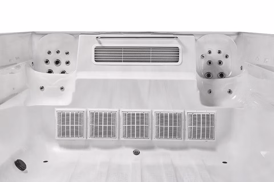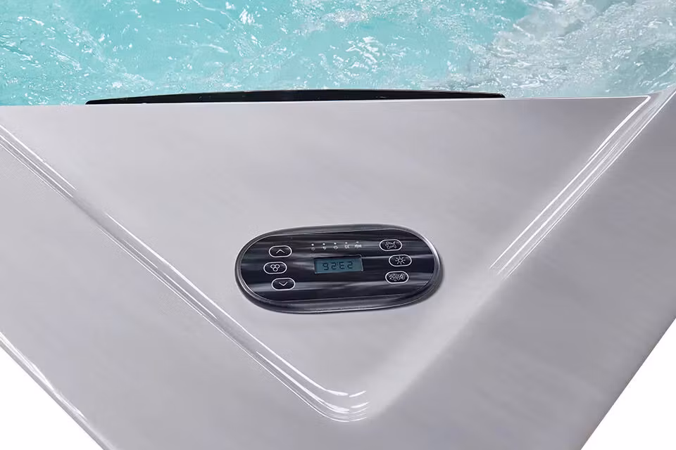 Strategiskt placerade kontrollpaneler gör alla funktioner lättåtkomliga varifrån som helst i spabadet. Den väl genomtänkta layouten med integrerade sidosittplatser optimerar både badutrymme och komfort. Dess kompakta storlek gör att detta simspa passar in i de flesta trädgårdar, samtidigt som det erbjuder fördelarna med en fullstor pool och spabad.